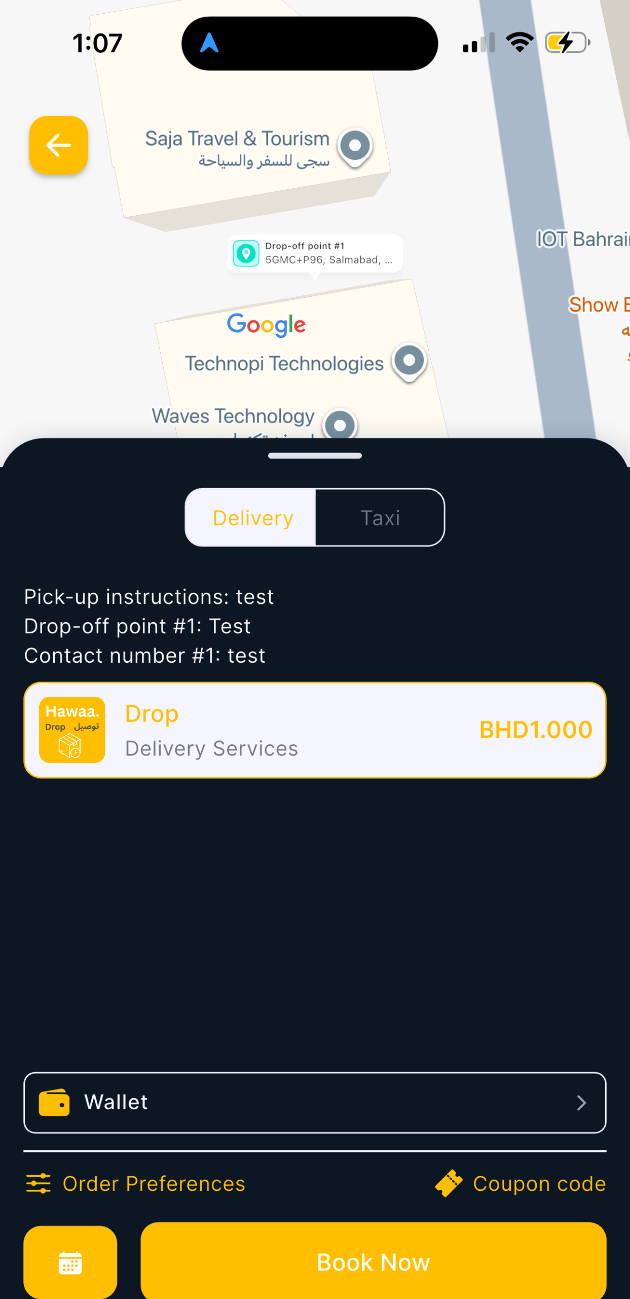 Need something delivered? Hawaa makes it easy! Just enter the pickup and drop-off locations, and our app ensures fast, reliable, and hassle-free deliveries. Whether it’s documents, packages, or essentials, Hawaa gets it where it needs to go—quickly and affordably.